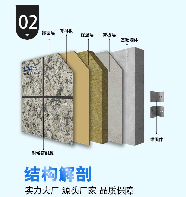 温度稳定。保温装饰一体板通过高效保温芯材(如岩棉)的闭孔结构设计,显著降低导热系数(0.03-0.045W/m·K),减少室内外热量交换。数据显示,使用该材料的建筑室内温度波动幅度可缩小30%-50%,冬季减少热量流失,